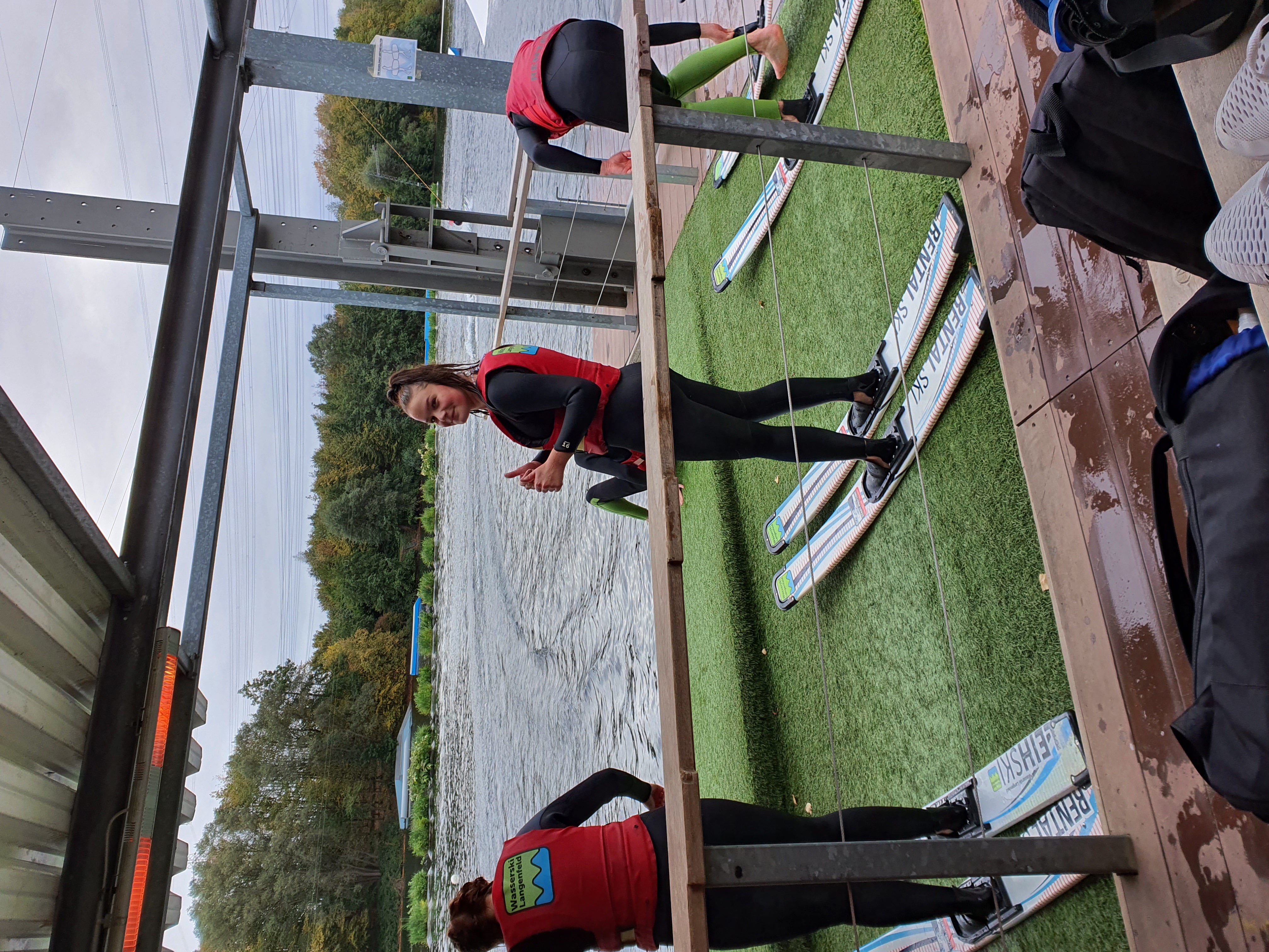 An einem spät sommerlichen Septembermorgen brachen alle Sportkurse der Q1 mit den Sportlehrern Herrn Güldenzoph und Herrn Dobler zur Wasserskianlage nach Langenfeld auf. Auf dem Programm stand der mit klarer Mehrheit gewählte inhaltliche Kern im Bewegungsfeld 8 Gleiten, Fahren, Rollen: Gleiten auf dem Wasser. Was sich einfach anhört, musste erstmal auf den Paar-Skiern gestanden werden. Schließlich wollte man das Schwimmen heute bestmöglich vermeiden, stand das bitte ein anderes Mal auf dem Plan.
