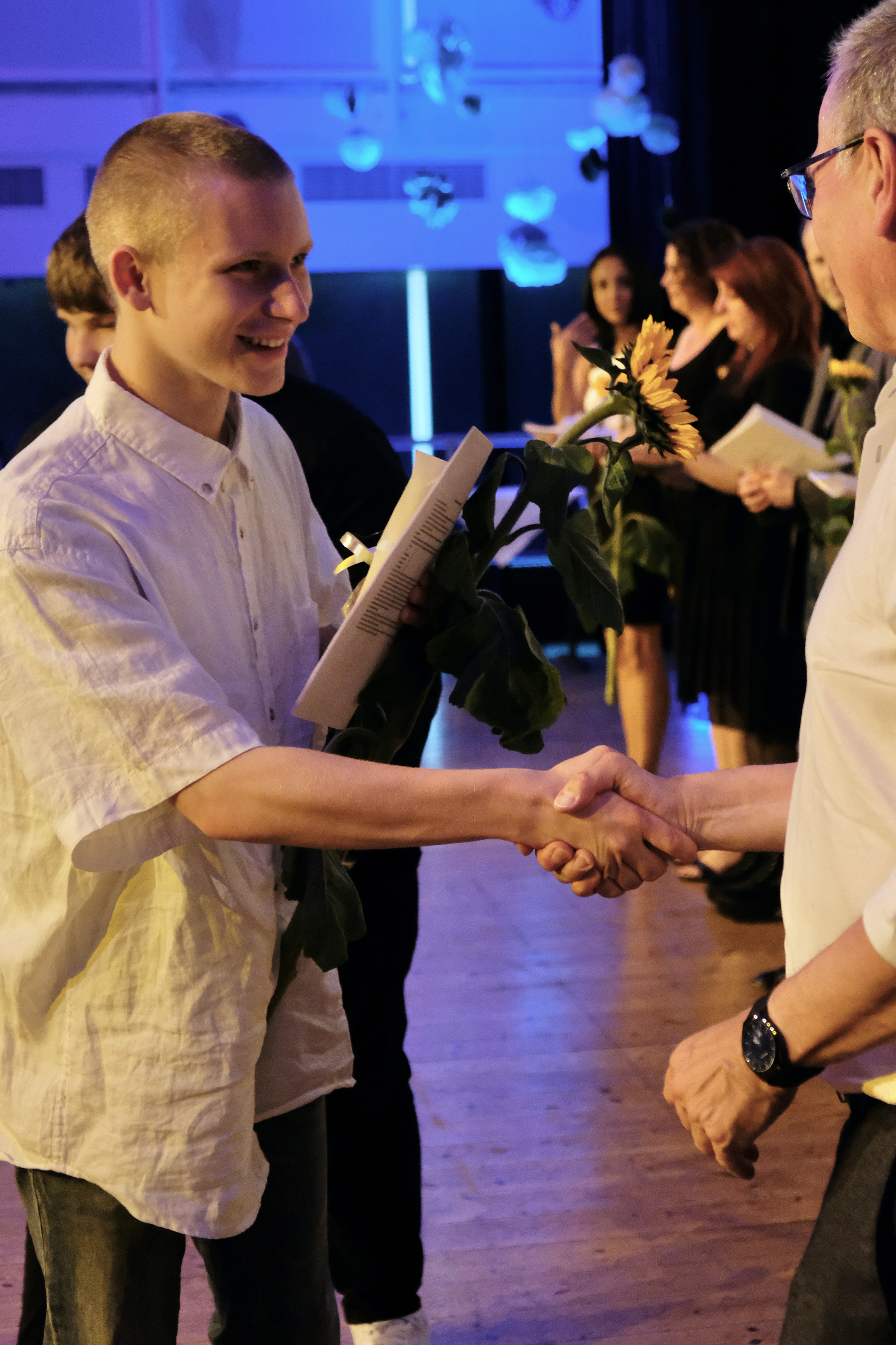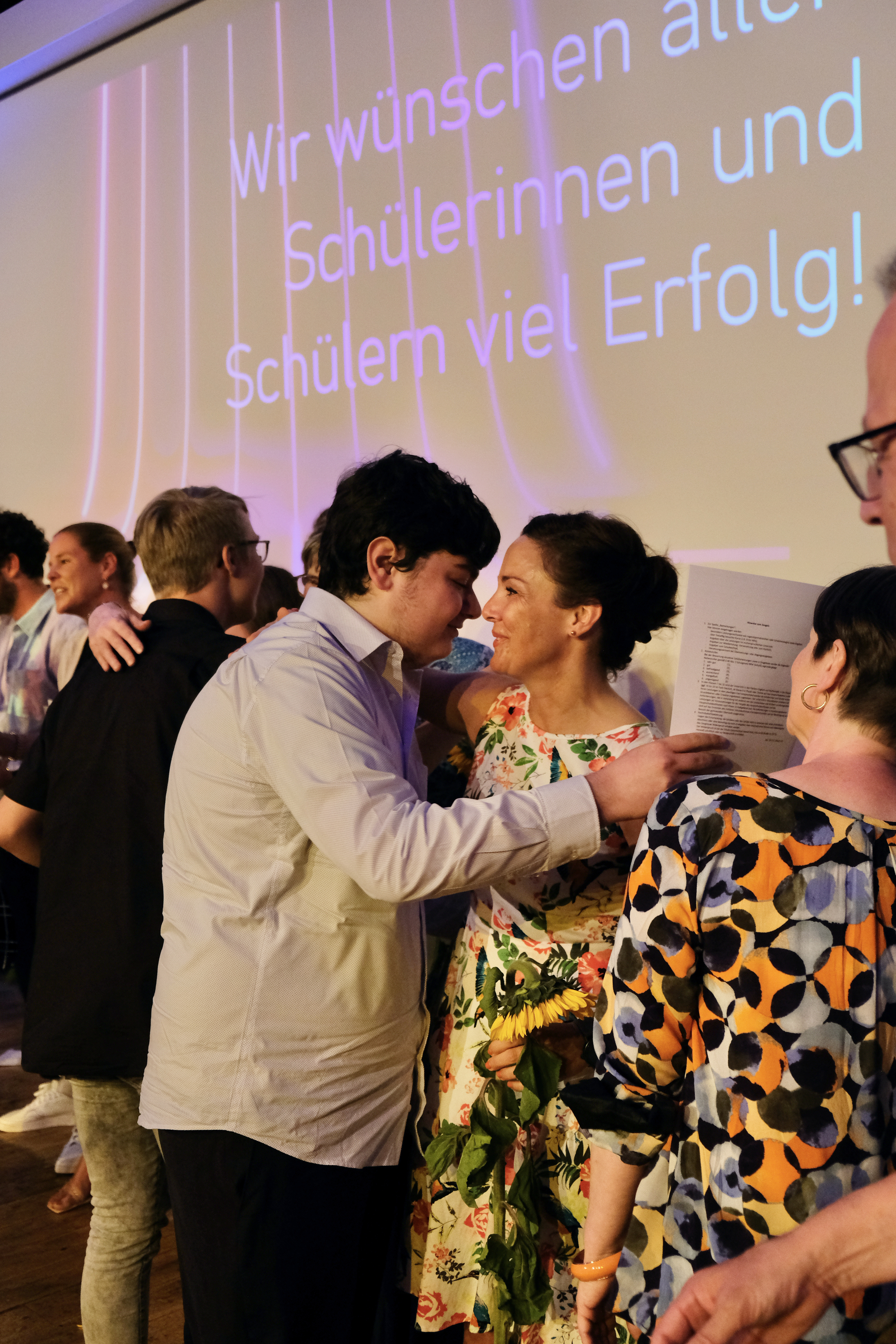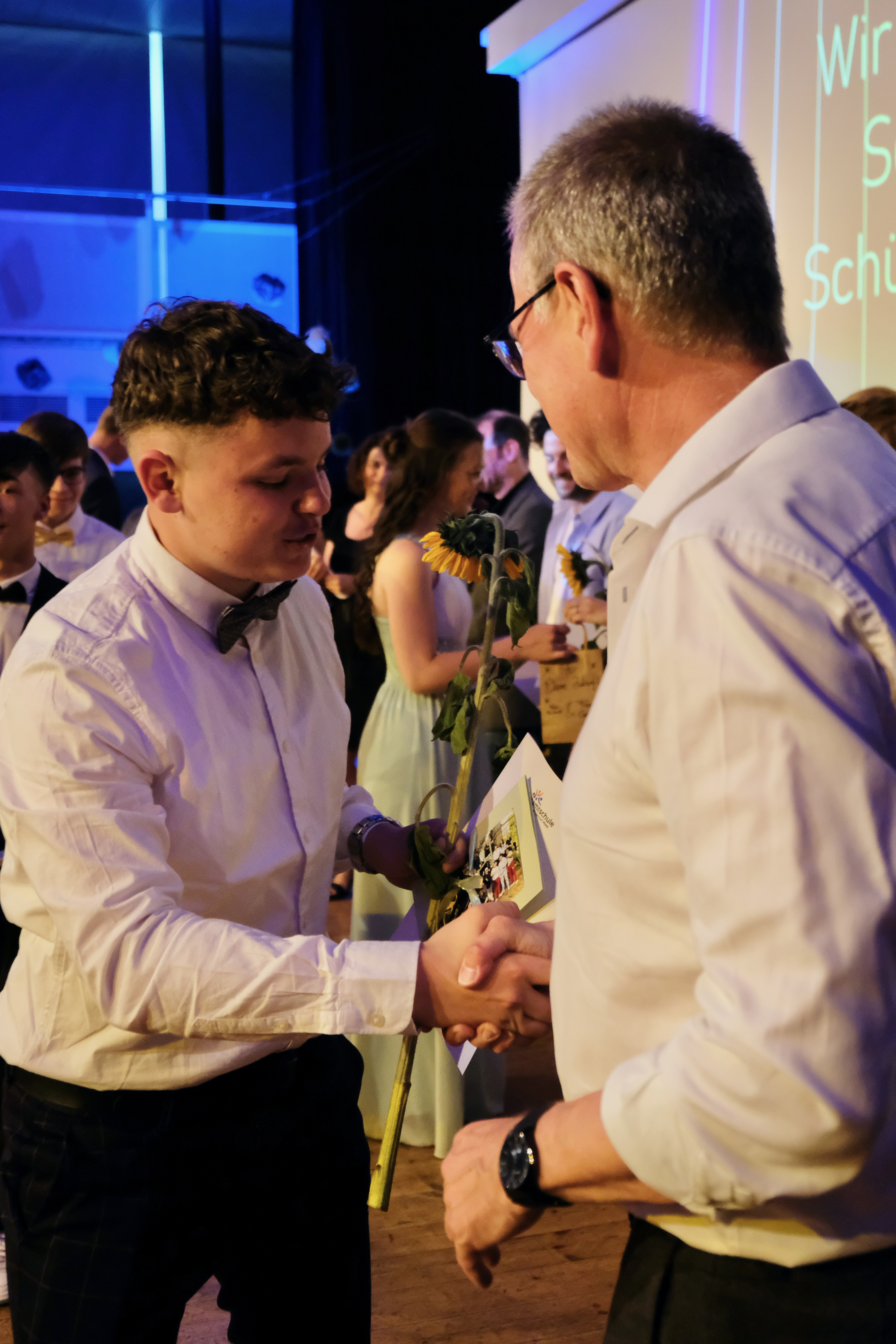 Die Schüler*innen der Jahrgangsstufe 9 beginnen mit den Vorbereitungen für einen Sektempfang und die ersten Lehrkräfte der Jahrgangsstufe 10 versammeln sich freudig angespannt im Lehrer*innenzimmer. Langsam füllt sich der Schulhof der Gesamtschule Hennef-West mit festlich gekleideten Schüler*innen in eleganter Garderobe, die allmählich ihren Weg in die Aula finden. Spätestens als der Absolvent Erekle Sirbilashvili die anstehende Zeugnisvergabe mit einem Klavierintro einleitet, baut sich die stimmungsvolle Atmosphäre vollends auf.