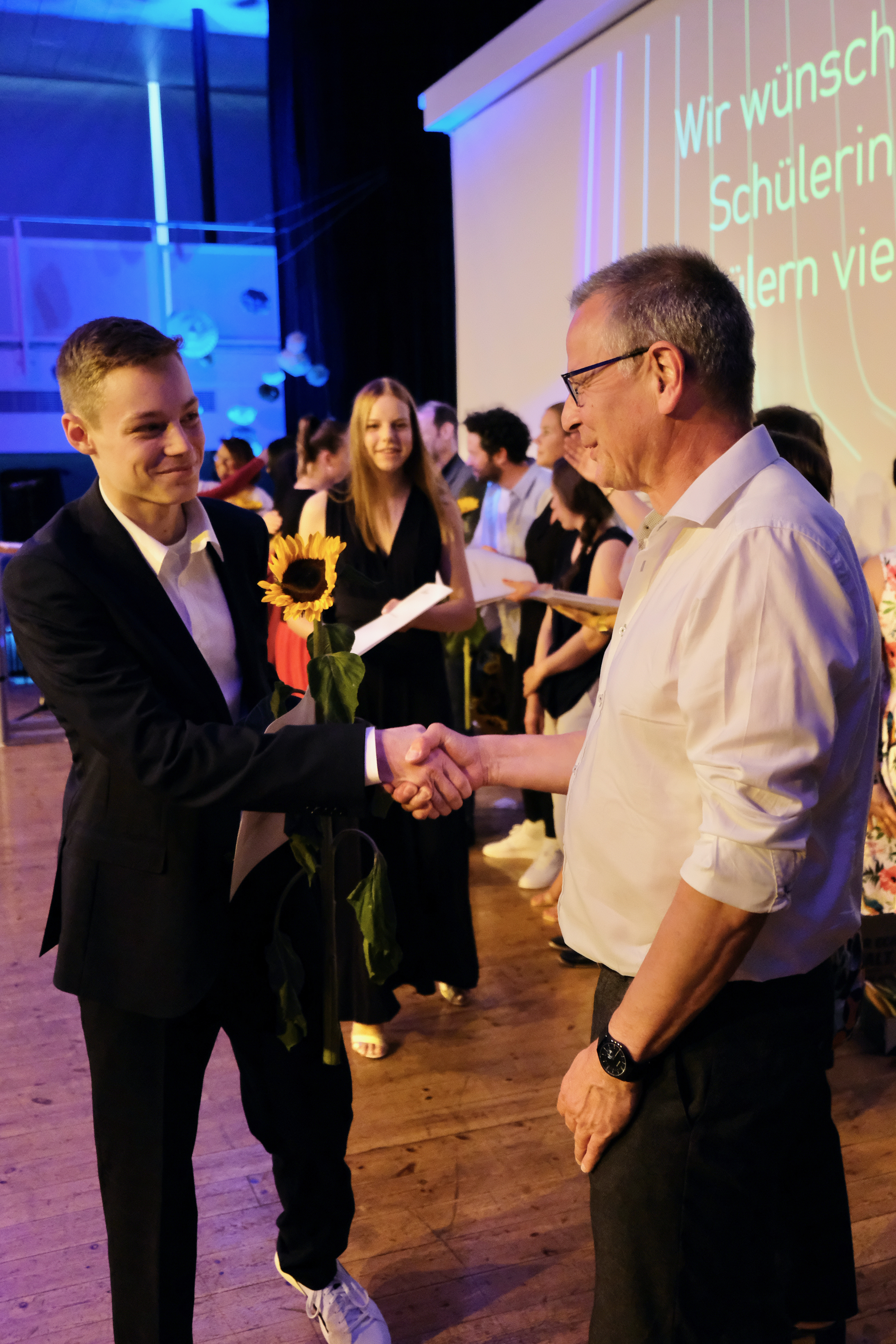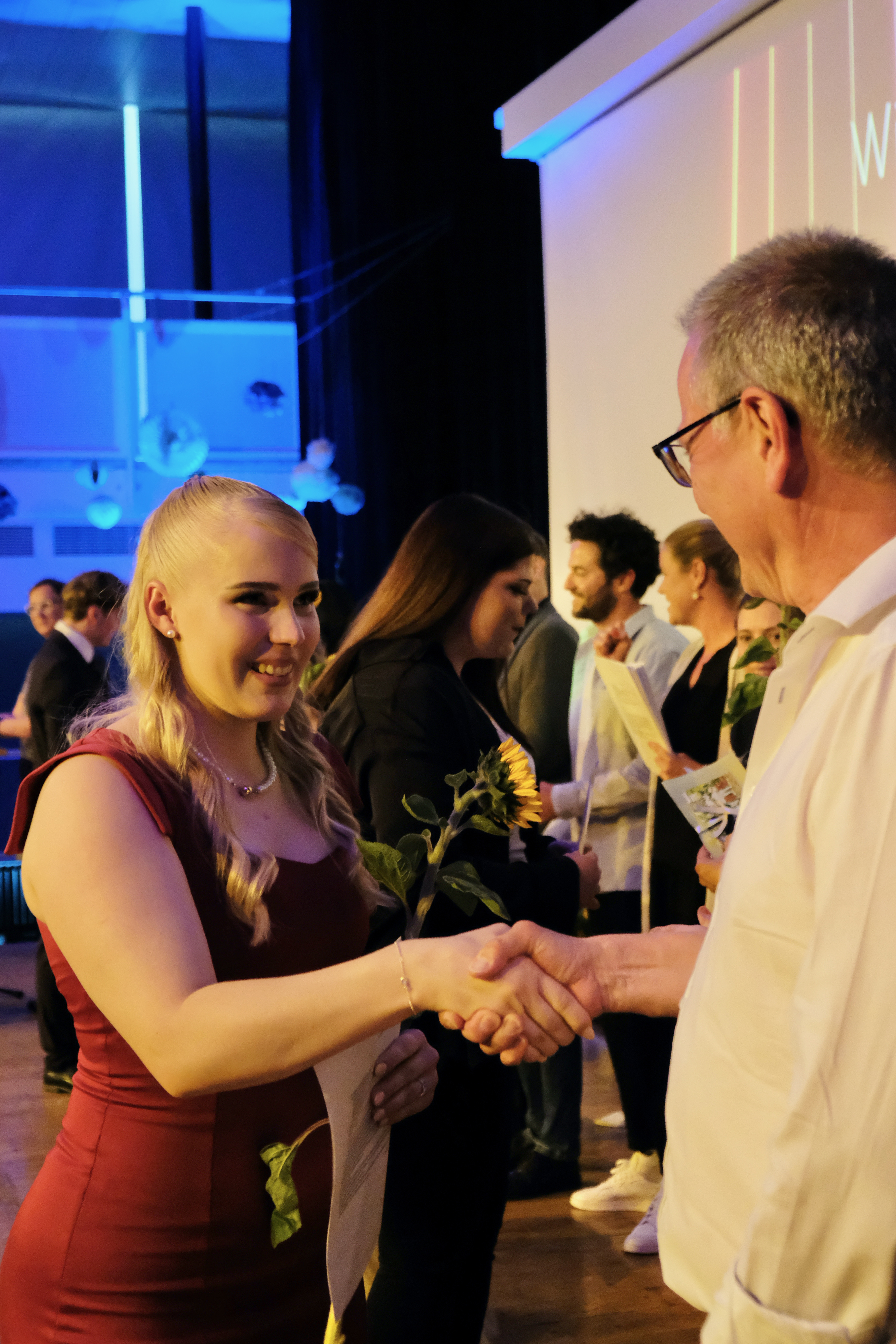 Mittwoch, 15.Juni 2022, die Sonne strahlt, Luftballons und Goldwimpel schmücken eine professionell illuminierte Aula. Das Technik-Team ist bereits Tage vor der Feier mit der Planung beschäftigt.