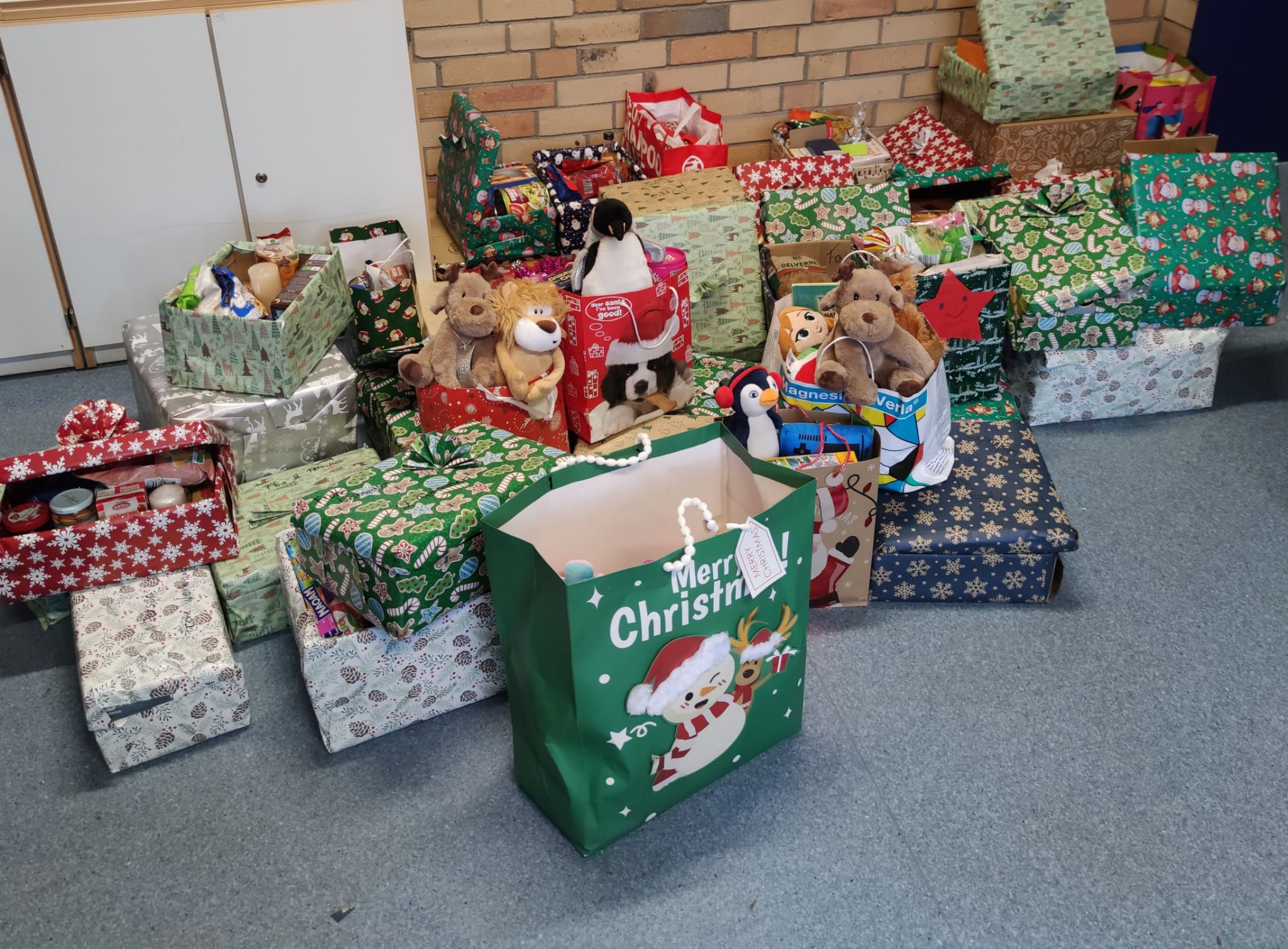 - 55 Pakete voll mit Lebensmitteln und Spielsachen -